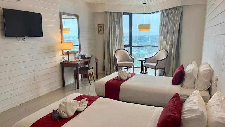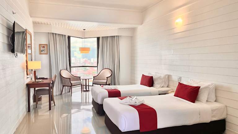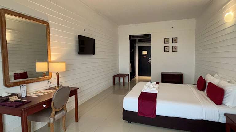 Die Zimmer im Napalai Hotel sind modern eingerichtet und bieten viel Tageslicht. Jedes Zimmer verfügt über ein eigenes Bad mit einer Warmwasserdusche und ist gut ausgestattet.