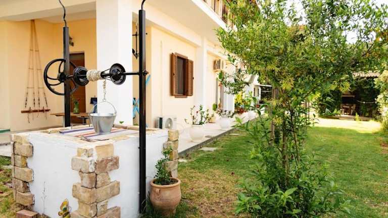 Die Unterkunft befindet sich in Petrití, nur 200 Meter vom Strand Petriti entfernt. Auch der Strand Notos ist in 800 Metern erreichbar und die Entfernung zum Strand Paralia Mpoukari beträgt 2,5 Kilometer. Zu weiteren Sehenswürdigkeiten in der Umgebung zählen die Kirche von Panagia Vlacherna Garitsa in 28 Kilometer Entfernung sowie die Ionische Universität, die 29 Kilometer entfernt ist. Der Palast Achilleion liegt 20 Kilometer entfernt und Pontikonisi befindet sich 21 Kilometer von der Unterkunft. Der nächste Flughafen, Flughafen Korfu, ist 31 Kilometer entfernt.