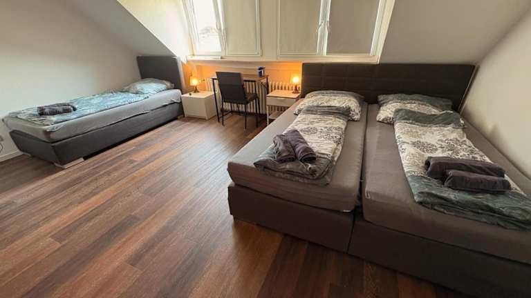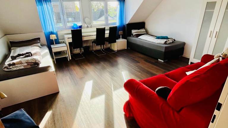 Die NaSa Wohnung Uerdingen befindet sich in Krefeld, 18 km von der Merkur Spiel-Arena und 19 km von der Einschornsteinsiedlung entfernt. Der nächstgelegene Flughafen ist der Flughafen Düsseldorf, der 19 km entfernt liegt. Die Unterkunft ist mit öffentlichen Verkehrsmitteln gut erreichbar und bietet eine zentrale Lage.