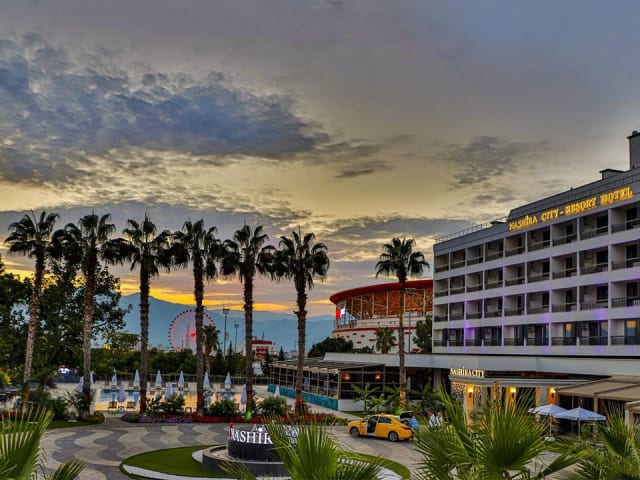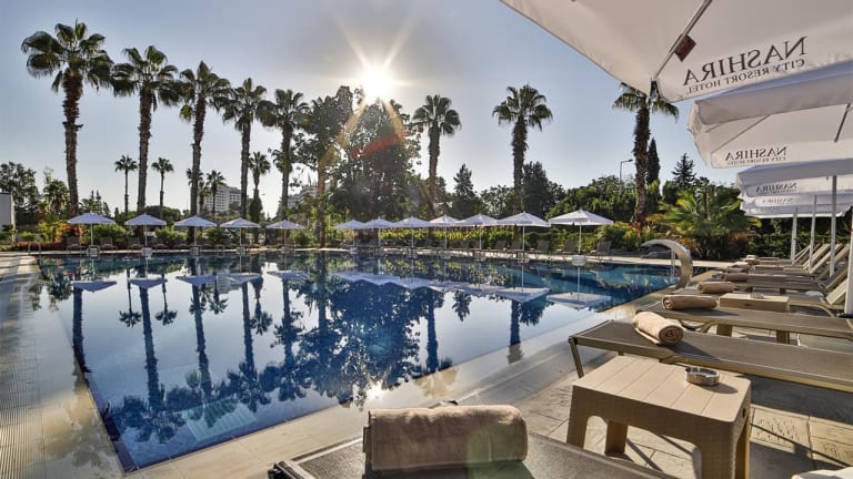 Welcome to Nashira City Resort Hotel , Nashira City Resort Hotel is in the city center of Antalya within a walking distance of the world-famous Konyaaltı beach, has a unique Mediterranean view, and operates in BB and HB concept, offering you a pleasant and comfortable holiday. The hotel offers 100 comfortable Rooms, Fitness Centre, Restaurant, Bars, Outdoor Pool,, 6 Tennis Courts, 4 Meeting Halls, 24/7 nurse, and much more. Nashira City Resort Hotel offers 10 Standard Economic Rooms, 32 Standard City view, 56 Standard Panoramic View, 1 Family Room, 1 Suite, 1 Handicapped Room. All Rooms have free WiFi, Balcony, Bathroom, Private Safe, Tea-Coffee Set, Minibar, TV LED. Have an unforgettable holiday by the Outdoor Pool (420 m2) with the whole family. The kids will enjoy the Kids Outdoor Pool (26 m2) and Animation. Enjoy the best Turkish and World Cuisine at Sultan, the main Restaurant with 420 person capacity. Patara Lobby Bar is opened 24/7, Flamingo Pool Bar is at your service from 10:00 till 23:00