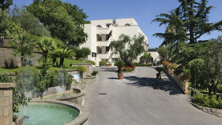 Das Hotel liegt auf einer Anhöhe oberhalb von Sorrent und bietet einen traumhaften Panoramablick auf die umliegenden Gewässer. Der Strand ist etwa 2 km entfernt und kann bequem mit dem hoteleigenen Shuttleservice erreicht werden. Das Stadt- und Touristenzentrum von Sorrent ist nur ca. 3 km entfernt und bietet zahlreiche Einkaufs- und Unterhaltungsmöglichkeiten.