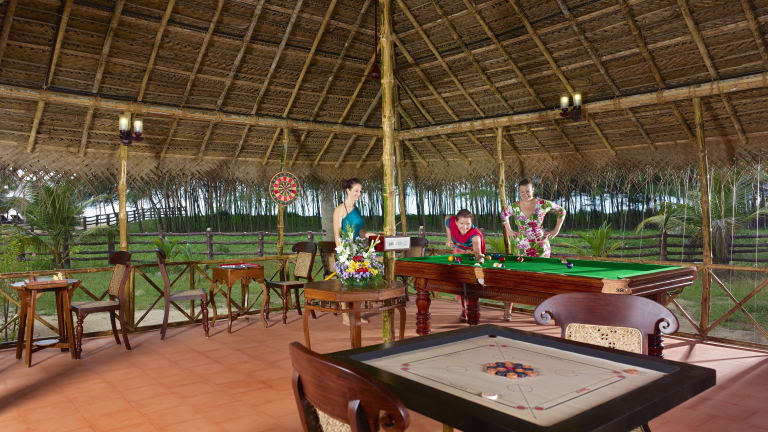 Multi Cuisine Restaurant (für Ayurveda Gäste: ayurvedisch vegetarisches Menü) Ayurveda Zentrum Yoga Zentrum Lounge mit Meerblick, Billardtisch, Brettspielen und Gratis Wifi Tennis Court Swimming Pool mit Whirlpool Ayurveda und Souvenir Shop Bibliothek mit über 2500 Büchern Wäscherei Service Taxi Service Gratis Wi-fi in der Rezeption Kulturelle Programme am Wochenende Telefon, Kühlschrank, Warmwasser, Safe in jedem Zimmer Bereitschaftsarzt Geldwechseleinrichtung (wir akzeptieren alle Währungen) Visa und Mastercard wird akzeptier Sonnenschirme Verstellbare Liegestühle Schwimmwesten Kajaks Angelruten Security Personal am Strand 24/7