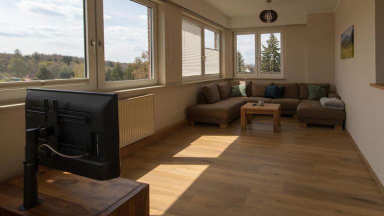 Die Ferienwohnung umfasst 3 Schlafzimmer, ein Wohnzimmer mit einem Flachbild-TV sowie eine gut ausgestattete Küche mit Kühlschrank und Geschirrspüler. Darüber hinaus bietet die Unterkunft ein Badezimmer mit Dusche. Handtücher und Bettwäsche werden zur Verfügung gestellt.