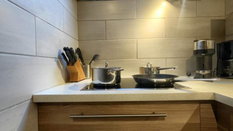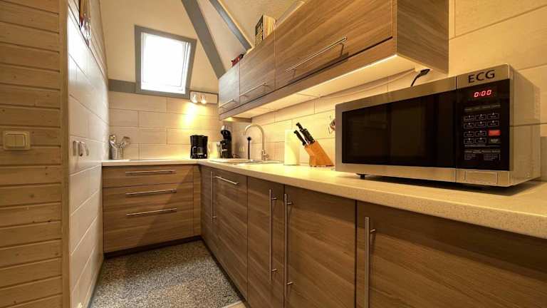 Die Unterkunft beinhaltet eine Küchenzeile mit einem Kühlschrank und Geschirrspüler, die eine Selbstverpflegung ermöglicht. Für zusätzlichen Komfort kann die Unterkunft Handtücher und Bettwäsche gegen Aufpreis bereitstellen.