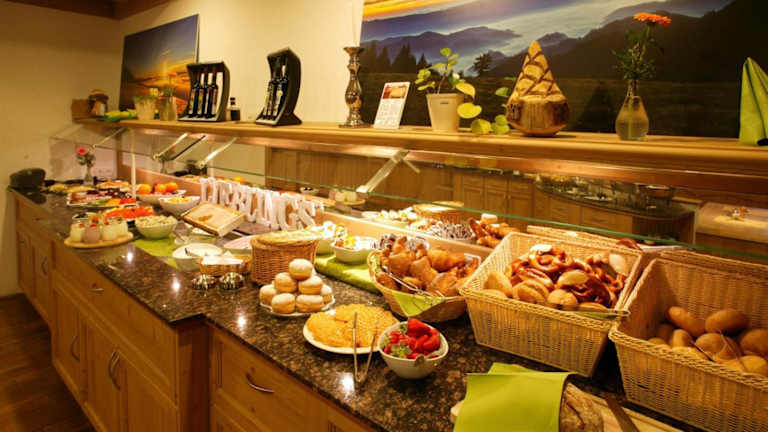 Im Natur- und Sporthotel Zuflucht erwartet Sie ein reichhaltiges Frühstücksbuffet, das jeden Morgen für Sie bereitsteht. Das Mittagessen kann à la carte oder als Teil der Halb- oder Vollpension eingenommen werden. Genießen Sie regionale schwäbische Küche und lassen Sie sich im Panoramarestaurant verwöhnen.