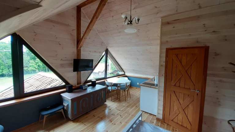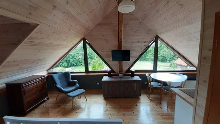 Die Maisonette-Apartments im Pensjonat Natura sind mit stilvollen Holzböden ausgestattet und bieten einen gemütlichen Sitzbereich sowie einen eigenen Kamin. Jedes Apartment verfügt über ein eigenes Bad mit Dusche. Für Ihre Bequemlichkeit gibt es auch eine voll ausgestattete Küchenzeile mit Kühlschrank, Herd und Wasserkocher.
