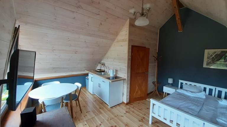 Das Pensjonat Natura in Swaderki bietet Ihnen die Möglichkeit, Ihren Aufenthalt in einer malerischen Umgebung im Bezirk Masuren zu verbringen. Die gemütlichen Maisonette-Apartments mit stilvollen Holzböden und einem eigenen Kamin sorgen für eine entspannte Atmosphäre. Die voll ausgestattete Küchenzeile ermöglicht es Ihnen, sich selbst zu verpflegen. WLAN und Parkplätze stehen Ihnen kostenfrei zur Verfügung. Genießen Sie die Natur und nutzen Sie die Wassersportmöglichkeiten sowie den Kinderspielplatz. Erkunden Sie die Umgebung beim Wandern oder Kanufahren.