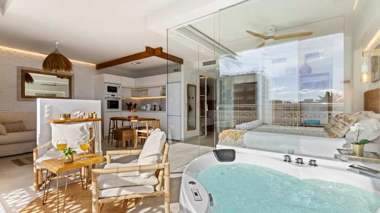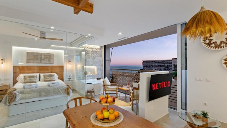 Die Unterkunft befindet sich in Torremolinos, direkt am Strand und in der Nähe des Playa del Bajondillo, der etwa 500 Meter entfernt liegt. Der Yachthafen Benalmadena ist 4,3 Kilometer entfernt. Der nächstgelegene Flughafen ist der Flughafen Málaga, welcher 9 Kilometer von der Unterkunft entfernt liegt.
