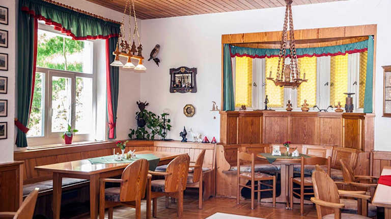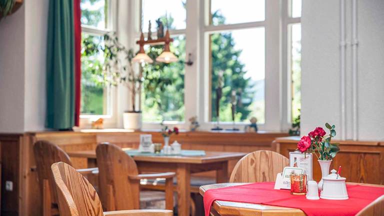 Beginnen Sie Ihren Tag mit einem leckeren Frühstücksbuffet im hellen Frühstücksraum der Pension, der einen herrlichen Blick auf die umliegenden Berge bietet. Wenn Sie Lust haben, können Sie auch eines der vielen Cafés im Stadtzentrum von Oberwiesenthal besuchen und dort köstliche Speisen genießen.