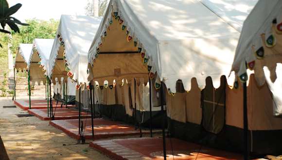 Das Nature Camp Konark Retreat bietet luxuriöse Zelte mit hochwertiger Ausstattung. Handtücher und Bettwäsche werden gestellt, um Ihren Aufenthalt so angenehm wie möglich zu gestalten. Jedes Zelt bietet einen atemberaubenden Blick auf den Fluss und sorgt für eine ruhige und entspannte Atmosphäre.