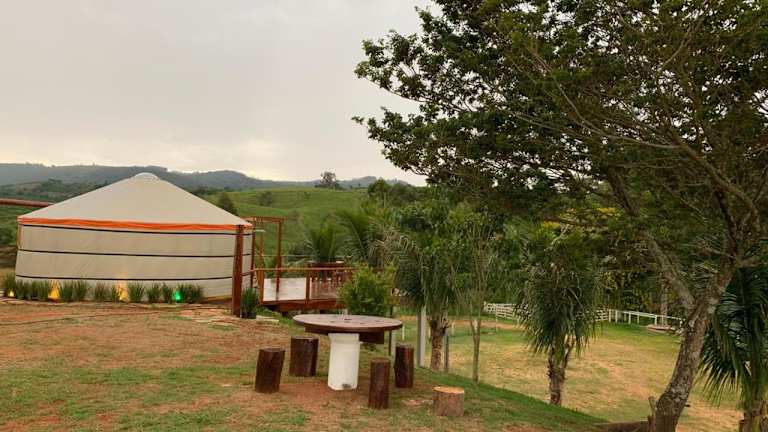 Die Zelt-Lodge Natureza exuberante, conforto inesquecível, yurt mongol bietet ein einzigartiges Übernachtungserlebnis mit Stadtblick. Die Lodge ist umgeben von einem Garten und verfügt über eine Terrasse sowie einen Balkon. Ein kostenloser Privatparkplatz steht ebenfalls zur Verfügung.