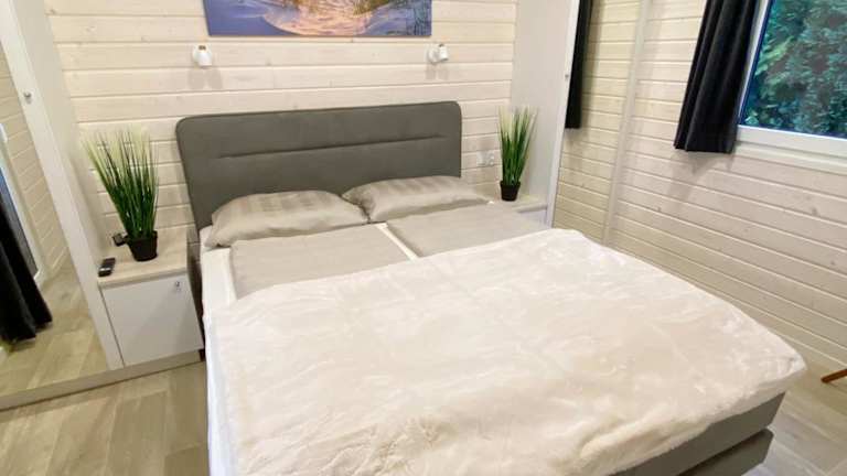 Das Ferienhaus verfügt über 2 Schlafzimmer, ein gemütliches Wohnzimmer und eine voll ausgestattete Küche mit Kühlschrank und Kaffeemaschine. Das Badezimmer ist mit einer Dusche und einem Haartrockner ausgestattet. Handtücher und Bettwäsche werden gestellt, sodass Sie sich um nichts kümmern müssen. Genießen Sie den Blick auf den Garten von der Terrasse oder der Veranda aus.