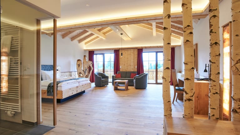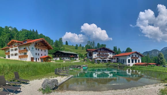 Unser familiär geführtes Naturhotel liegt nur 10 Autominuten außerhalb vom Ortskern Berchtesgaden – ruhig und erhaben am Südosthang, mit grandiosem Panorama-Bergblick in die Berchtesgadener Alpen und bietet Erholung für den anspruchsvollen Gast. Hier oben dehnt sich die Zeit. Das Getrieben sein wird entschleunigt. Wellness in ganz besonderem Ambiente: Wir bieten einen äußerst großzügig gestalteten Wellnessbereich mit Blockhaussauna (nur durch eigenes Feuerholz beheizt), Bio-Sauna, Dampfbad, Infrarotkabine, Kneipp-Anlage mit Fuß-Reflex-Pracour (Indoor und Outdoor) und Fitnessraum. Unser Panorama-Hallenschwimmbad mit Gegenstromanlage verfügt über einen integrierten Whirlpool und wohligen 29 Grad Badetemperatur. Großer Schwimmteich mit reinem Bergquellwasser! Ein Physiotherapeut (alle Kassen) und ein professionelles Beauty und SPA-Team befinden sich im Haus. Unsere Zimmer und Suiten sind alle mit Flachbild-TV, Minibar, Safe, Föhn, Telefon und freiem WLAN ausgestattet. Seit Juli 2020 können auf ca. 200 qm, in unserem Neubau, liebevoll restaurierte Oldtimer besichtigt werden. Wintertipp: Wir liegen direkt an der Skiabfahrt vom Skigebiet Götschen. Partnerhotel des Premium-Weitwanderweges SalzAlpenSteig, Etappe 7! Wir laden Sie ein in unsere Quelle des Wohlbefindens! Ein herzliches Willkommen im Naturhotel Reissenlehen bei Familie Irlinger!