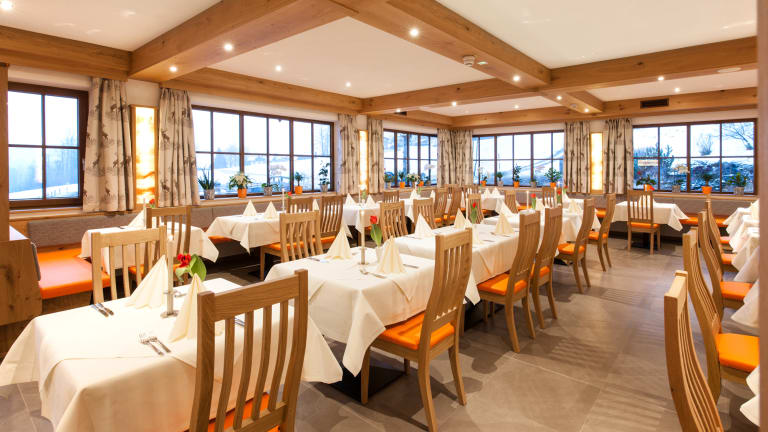 Der Morgen startet am reichhaltigen Frühstücksbuffet, wo man von den Mitarbeitern mit viel Charme und Freundlichkeit begrüßt und umsorgt wird. Die schmackhaften Produkte kommen aus heimischen Betrieben. So stammt die frische Wurstauswahl vom Metzger Drexler und die knusprigen Brot- und Backwaren von der Bäckerei Böcklmühle, ein Traditionsbetrieb in dritter Generation und der Heimat sehr verbunden. Ein Genuss, dem man kaum widerstehen kann, auch wenn noch viele andere Köstlichkeiten am Buffet locken…denn es gibt Käsevarianten, Eierspeisen, Müsli, Fruchtsalat, Joghurts, Säfte und vieles mehr. Zum Nachmittag lädt Sie im Sommer die herrliche Sonnenterrasse und im Winter unser moderner Gastraum zu einer wohlverdienten Pause ein. Kaffee-Spezialitäten und verschiedene Kuchen, Torten oder Strudel mit einer Extraportion Eis und Sahne laden zum Naschen und Genießen ein. Den Blick aufs Bergpanorama gibt’s dabei gratis dazu! Am Abend verwöhnen schmackhafte Speisen den Gaumen. Die Auswahl wechselt je nach Saison regelmäßig und sorgt für leckere Abwechslung beim Drei-Gänge-Menü plus Salatbuffet und auf der kleinen Speisekarte. Es hat seinen ganz eigenen Reiz, wenn gekocht wird was die Saison bietet und aus der Region kommt – frische Kräuter aus dem hauseigenen Kräutergarten geben jedem Gericht zudem den finalen Schliff. Sonntags ist Ruhetag im Abendrestaurant!