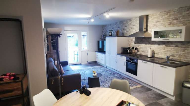 Die naturnahe und neu gestaltete Ferienwohnung bietet eine komfortable Unterkunft mit modernen Annehmlichkeiten. Die Unterkunft verfügt über eine Terrasse und kostenloses WLAN. Ein kostenfreier Privatparkplatz ist ebenfalls vorhanden.