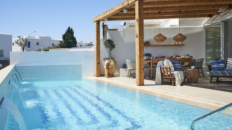 Die Nausicaa Luxury Villas bieten Ihnen Entspannung und Erholung am eigenen Pool. Sie können auch die Umgebung erkunden und Aktivitäten wie Wandern, Radfahren oder Wassersport in der Nähe ausüben. Für zusätzliche Entspannung können Sie auch das Spa-Angebot nutzen und sich bei einer Massage verwöhnen lassen.