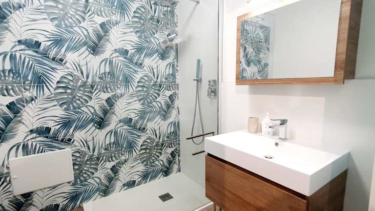 Die Ferienwohnung bietet ein Schlafzimmer, ein Wohnzimmer, eine voll ausgestattete Küche mit Kühlschrank sowie ein Badezimmer mit Bidet und Haartrockner. Handtücher und Bettwäsche werden bereitgestellt.