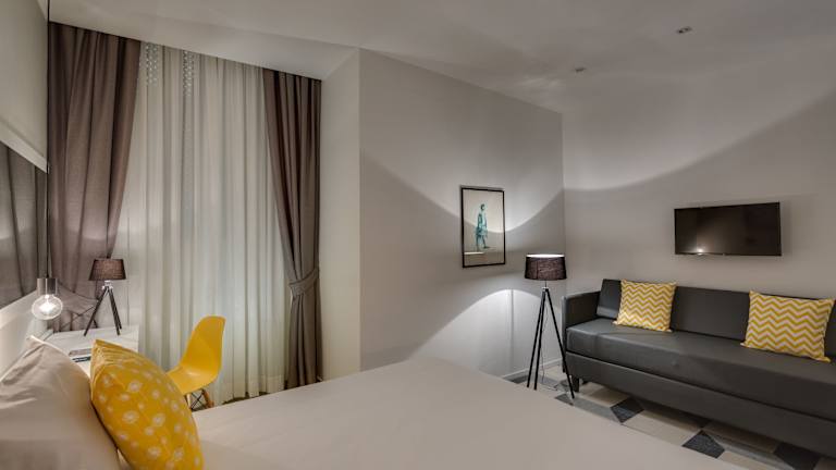 Das Navona Theatre Hotel befindet sich in einer idealen Lage im Zentrum von Rom. Die Piazza Navona ist nur 5 Gehminuten entfernt und bietet eine Vielzahl von Restaurants, Geschäften und kulturellen Attraktionen. Der berühmte Campo de' Fiori ist ebenfalls nur 400 m entfernt und das Pantheon erreichen Sie in 10 Gehminuten. Die zentrale Lage des Hotels ermöglicht es Ihnen, die Schönheit und Geschichte Roms bequem zu erkunden.
