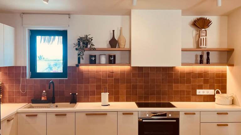 Die Villa umfasst 2 Schlafzimmer, ein Wohnzimmer und eine voll ausgestattete Küche mit Kühlschrank und Kaffeemaschine. Es gibt ein Badezimmer mit Dusche und Whirlpool. Handtücher und Bettwäsche werden bereitgestellt. Klimaanlage und schallisolierte Zimmer sind vorhanden.