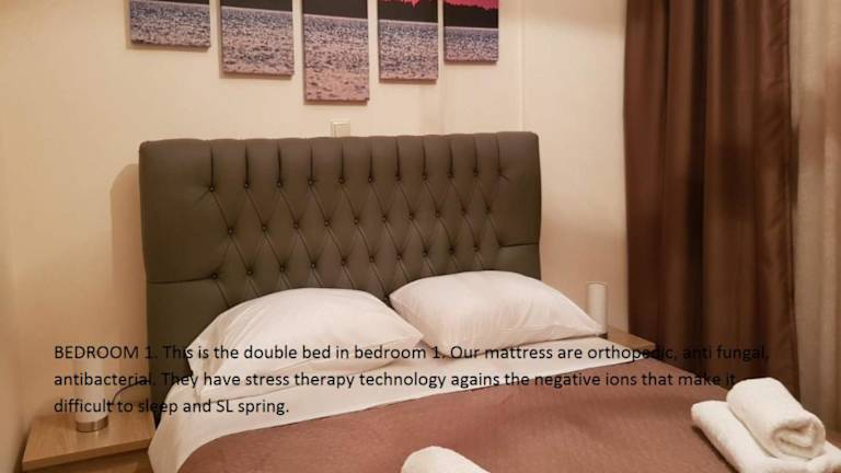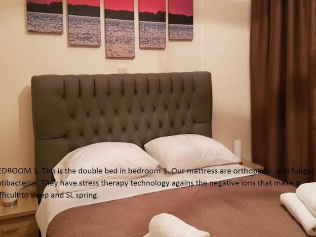 Die Ferienwohnung besteht aus 2 Schlafzimmern, einem Wohnzimmer und einer voll ausgestatteten Küche, die mit einem Kühlschrank und einer Kaffeemaschine ausgestattet ist. Zudem steht ein Badezimmer mit Dusche und Haartrockner zur Verfügung. Zur Ausstattung gehört auch ein Flachbild-TV sowie Klimaanlage. Allergikerfreundliche Zimmer sind auf Anfrage verfügbar.