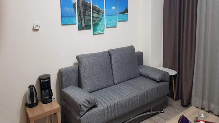 Nea peramos apartment Up to 8 person bietet eine Ferienwohnung mit einer Terrasse und direktem Strandzugang. Die Unterkunft verfügt über einen Balkon, kostenlosen Privatparkplatz und WLAN. Diese Nichtraucherunterkunft wird von einem privaten Gastgeber betrieben und ist für bis zu 8 Personen ausgelegt. Es gelten Altersbeschränkungen für den Check-in.