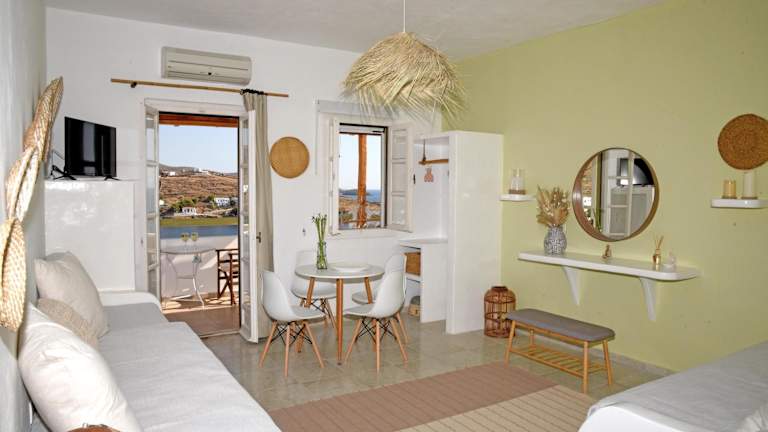 Die klimatisierten Unterkünfte in den NEFELI SUITES KYTHNOS verfügen über einen Balkon mit Meerblick. Jede Unterkunft ist mit einem Flachbild-TV, einer gut ausgestatteten Küche und einem eigenen Bad mit kostenfreien Pflegeprodukten ausgestattet. Ein Kühlschrank, ein Kochfeld, eine Kaffeemaschine und ein Wasserkocher stehen ebenfalls zur Verfügung, um Ihren Aufenthalt angenehm zu gestalten.
