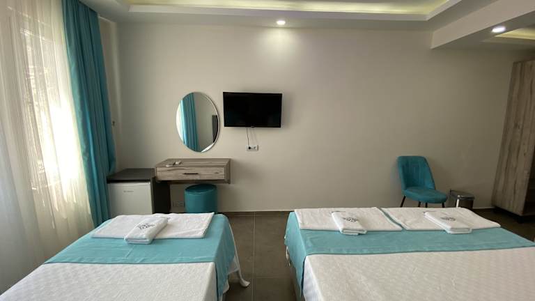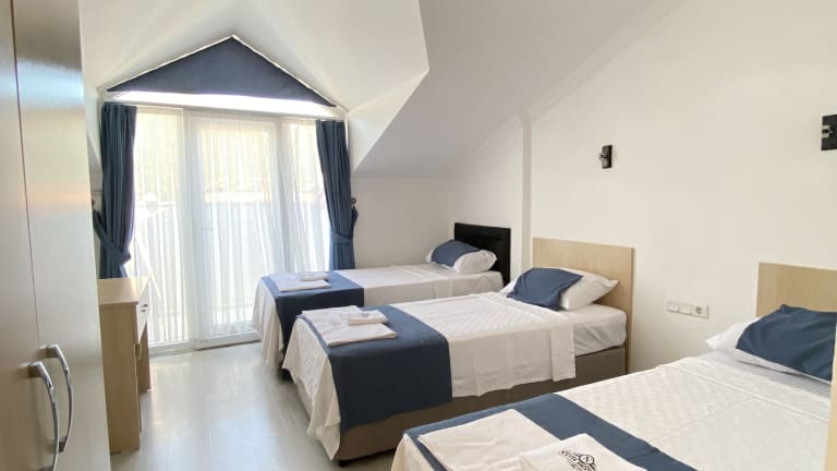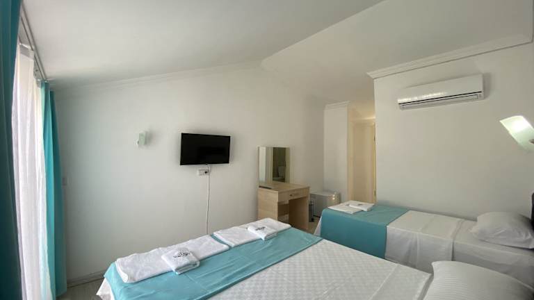 Die Zimmer im Nefis Hotel Ölüdeniz sind komfortabel eingerichtet und verfügen über Klimaanlage und einen Schreibtisch. Jedes Zimmer bietet zudem einen eigenen Balkon mit Blick auf den Pool.