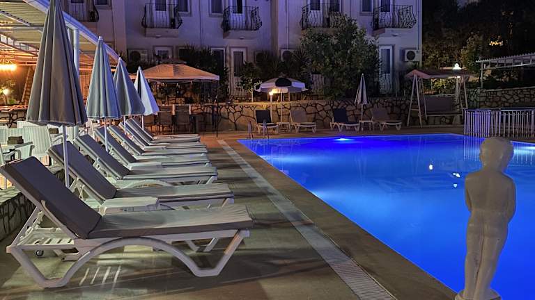 Das Nefis Hotel Ölüdeniz in Ölüdeniz ist der ideale Ort für einen entspannten Urlaub. Mit einem saisonalen Außenpool, einem schönen Garten und kostenfreiem WLAN bietet die Unterkunft alles, was Sie für einen angenehmen Aufenthalt benötigen. Genießen Sie den Poolblick von Ihrem Balkon und entspannen Sie in den komfortablen Zimmern. Die Snackbar lädt zum Verweilen bei einem erfrischenden Getränk ein. Für Unterhaltungsmöglichkeiten sorgen Billard, Tischtennis und Darts. Die Geisterstadt Kayakoy und die Burg Fethiye sind nur wenige Kilometer entfernt. Der Flughafen Dalaman ist ebenfalls gut erreichbar.