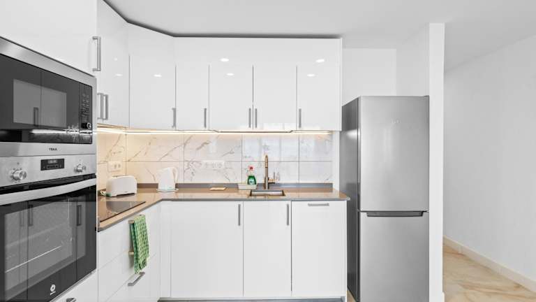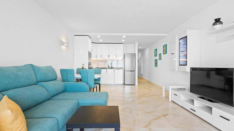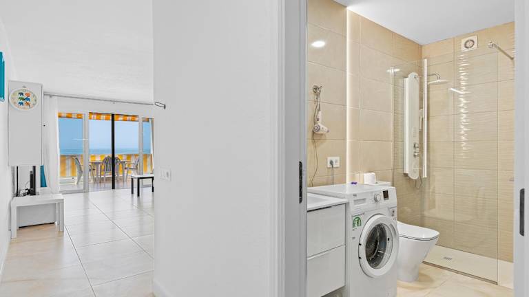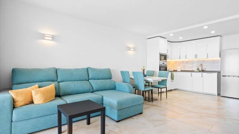 Die Ferienwohnung bietet Platz mit einem Schlafzimmer, einem Wohnzimmer, einer gut ausgestatteten Küche (mit Kühlschrank und Geschirrspüler) und einem Badezimmer mit Dusche. Zur Ausstattung zählen zudem ein Flachbild-TV sowie eine Terrasse mit Meerblick. Handtücher und Bettwäsche werden bereitgestellt.