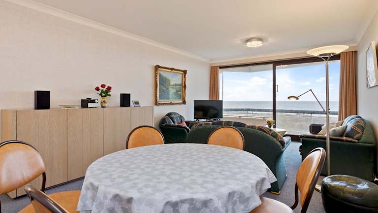 Neptunus 5A7 ist eine Ferienwohnung mit Meerblick und einer Terrasse, die über ein Schlafzimmer und ein Wohnzimmer verfügt. Sie ist Nichtraucher und bietet kostenlosen WLAN-Zugang sowie einen Privatparkplatz vor Ort.
