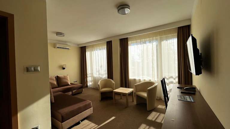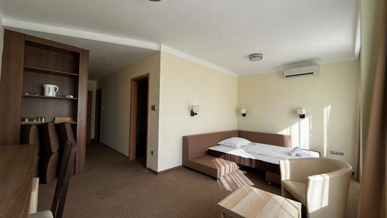 Die Zimmer im Nereus Park Hotel sind komfortabel und bieten alles, was Sie für einen angenehmen Aufenthalt benötigen. Jedes Zimmer verfügt über ein eigenes Badezimmer, einen Kühlschrank und Sat-TV. Die meisten Zimmer bieten einen herrlichen Blick auf den Plattensee, der Ihren Aufenthalt noch angenehmer macht. Gegen Aufpreis können Sie auch Zimmer mit Klimaanlage buchen, um sich an heißen Tagen abzukühlen.