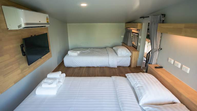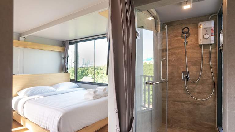 Die klimatisierten Zimmer im Hotel Nest by Sangob sind gemütlich und komfortabel eingerichtet. Jedes Zimmer verfügt über Kabel-TV mit einer großen Auswahl an thailändischen, englischen und chinesischen Kanälen, um sicherzustellen, dass die Gäste ihre Lieblingssendungen genießen können. Ein Kühlschrank ist ebenfalls vorhanden, um Getränke und Snacks kühl zu halten. Die Badezimmer sind mit Warmwasserduschen ausgestattet, um den Gästen einen angenehmen Aufenthalt zu ermöglichen.