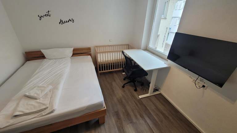 Die Ferienwohnung ist ausgestattet mit zwei Schlafzimmern, einer Küche, die mit einem Kühlschrank und Geschirrspüler versehen ist, sowie einem Badezimmer, das eine Dusche, einen Haartrockner und eine Waschmaschine umfasst. Handtücher und Bettwäsche werden zur Verfügung gestellt. Die Unterkunft bietet Nichtraucherzimmer und Familienzimmer.