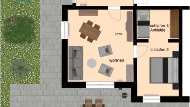 Die Ferienwohnung bietet ein Schlafzimmer, ein Wohnzimmer, eine gut ausgestattete Küche sowie ein Badezimmer mit Dusche und Badewanne. Die Ausstattung umfasst zudem handtücher und Bettwäsche sowie einen Satelliten Flachbild-TV. Zusätzlich steht eine Sonnenterrasse zur Verfügung, die einen Blick auf den Garten bietet.
