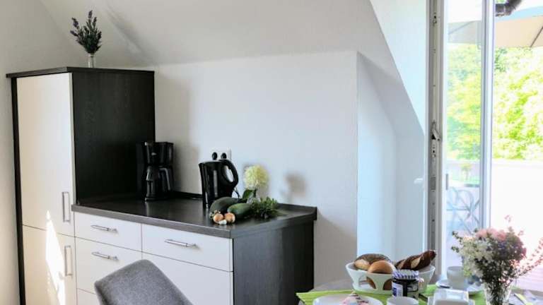 Die Ferienwohnung ist mit einem Schlafzimmer, einem Wohnzimmer mit Kabel-TV sowie einer voll ausgestatteten Küche mit Kühlschrank und Geschirrspüler ausgestattet. Das Badezimmer verfügt über eine Badewanne. Zur Verfügung stehen auch Handtücher und Bettwäsche.