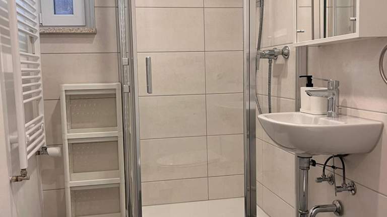 Die Ferienwohnung verfügt über eine voll ausgestattete Küche mit Kühlschrank, Geschirrspüler und Ofen. Es sind ein Essbereich sowie ein Badezimmer mit Dusche vorhanden. Handtücher und Bettwäsche werden bereitgestellt. Die Unterkunft bietet auch Nichtraucherzimmer und familienfreundliche Optionen.