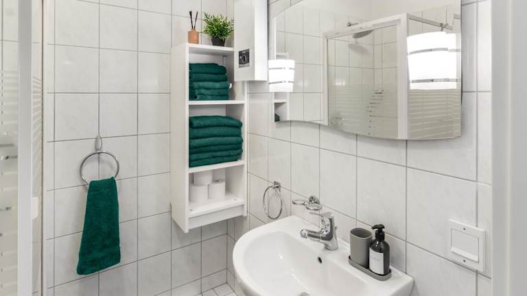 Die Ferienwohnung verfügt über zwei Schlafzimmer, ein Wohnzimmer, einen Flachbild-TV, eine gut ausgestattete Küche mit Kühlschrank und Geschirrspüler sowie ein Badezimmer mit Dusche. Handtücher und Bettwäsche werden bereitgestellt. Ein Balkon mit Stadtblick ergänzt die Unterkunft.