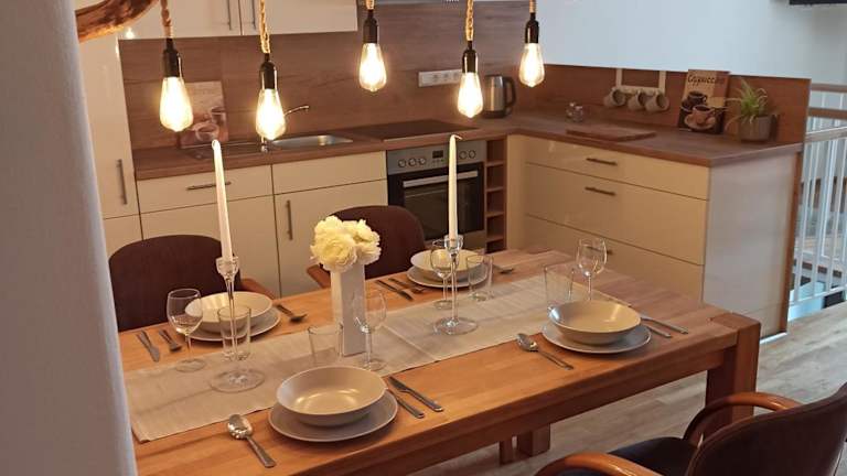 Die Ferienwohnung verfügt über zwei Schlafzimmer, ein Badezimmer, eine voll ausgestattete Küchenzeile, einen Essbereich und einen Flachbild-TV mit Satellitenempfang. Zur Ausstattung gehören zudem Bettwäsche und Handtücher. Die Unterkunft ist allergikerfreundlich und bietet eine Nichtraucherumgebung.