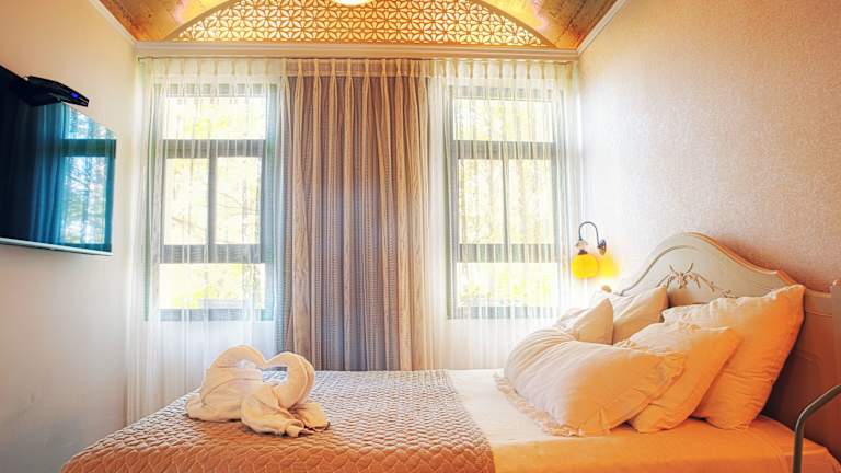 Das Neve Shalom Hotel befindet sich in dem ruhigen Dorf Shoresh und bietet eine atemberaubende Aussicht auf das Ajalontal und das Kloster Latrun. Tel Aviv liegt etwa 20 km südlich des Hotels. Die Lage des Hotels ermöglicht es Ihnen, die Ruhe der Umgebung zu genießen und gleichzeitig die nahe gelegenen Städte und Sehenswürdigkeiten zu erkunden. Jerusalem ist etwa 30 Autominuten entfernt und der Flughafen Ben Gurion liegt 30 km entfernt.