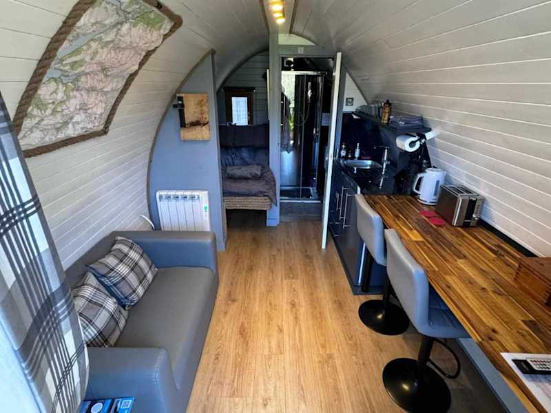 Die Campingkapsel im Nevis Pod, West Highland Way Holidays bietet gemütliche Unterkünfte mit einer Küchenzeile. Die Kapsel verfügt über einen Sitzbereich mit einem Flachbild-TV und ein eigenes Badezimmer mit kostenfreien Pflegeprodukten und einer Dusche. Zusätzlich gibt es eine Mikrowelle, einen Toaster, einen Kühlschrank und einen Wasserkocher für die Zubereitung von Mahlzeiten.