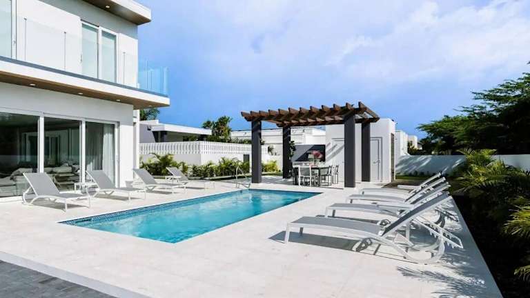 Die Unterkunft New 5BR 3BA Villa Biba Dushi bietet moderne Übernachtungsmöglichkeiten in Form einer Villa mit einem eigenen Außenpool und einer Terrasse. Es stehen kostenfreies WLAN und kostenlose Privatparkplätze zur Verfügung. Die Villa ist klimatisiert und umfasst 5 Schlafzimmer, ein Wohnzimmer sowie einen Garten.
