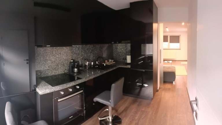 Die Ferienwohnung besteht aus einem Schlafzimmer und einem Wohnzimmer, ausgestattet mit einem Satelliten-Flachbild-TV. Eine voll ausgestattete Küche mit Kühlschrank ist ebenfalls vorhanden. Handtücher und Bettwäsche werden bereitgestellt.