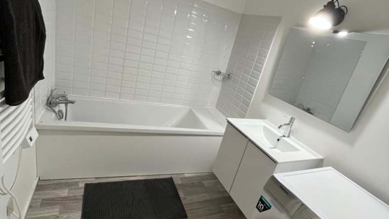 Die Ferienwohnung verfügt über ein Schlafzimmer, eine Küche mit Kühlschrank und Geschirrspüler, einen Flachbild-TV, einen Sitzbereich sowie ein Badezimmer mit Badewanne. Handtücher und Bettwäsche sind in der Unterkunft ebenfalls vorhanden.