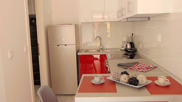In diesem Apartment können die Gäste ihre eigenen Mahlzeiten zubereiten, da es eine gut ausgestattete Küche mit einem Kühlschrank, einem Backofen und einem Toaster gibt. Alternativ können die Gäste auch in einem der nahegelegenen Restaurants speisen und die lokale Küche genießen.