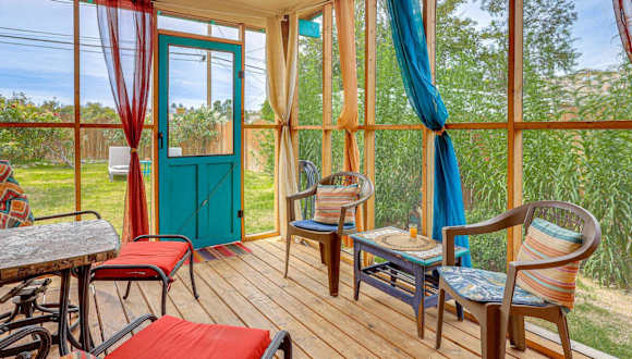 New Mexico Cottage Hot Springs Fed Tub On-Site bietet Übernachtungsmöglichkeiten mit einer Veranda oder einem Patio. Das Ferienhaus ist klimatisiert und bietet eine angenehme Atmosphäre.