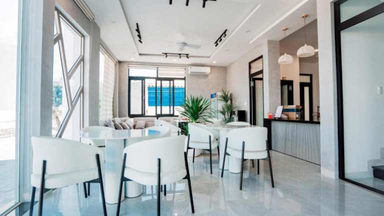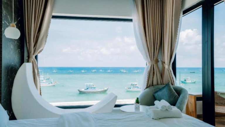 Das New Moon Hotel bietet klimatisierte Zimmer in Cu Lao Thu. Jedes Zimmer ist mit einem Kleiderschrank ausgestattet und verfügt über ein eigenes Badezimmer, das mit einem Bidet und kostenlosen Pflegeprodukten ausgestattet ist. Die Zimmer bieten außerdem kostenfreies WLAN, wobei ausgewählte Zimmer über einen Balkon verfügen. Alle Zimmer sind mit Bettwäsche und Handtüchern versehen.