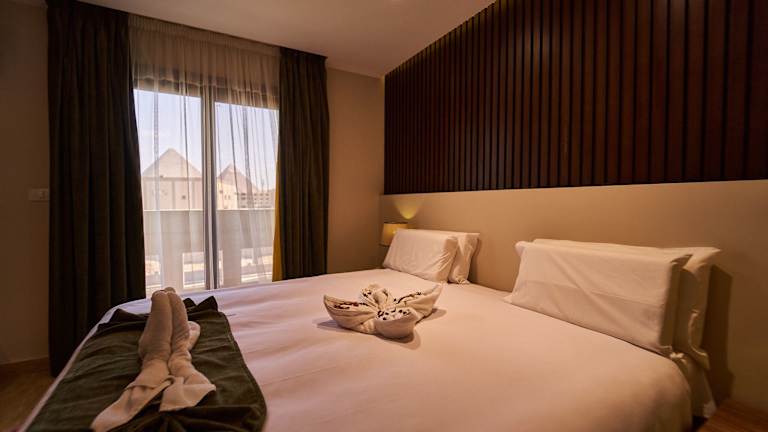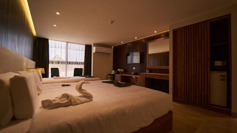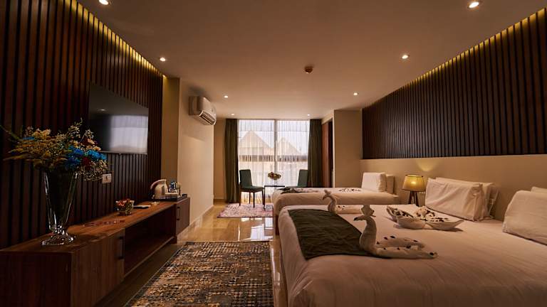 Das New Pyramid Front Hotel liegt in Kairo im Bezirk Giza, nur 1,6 km von den Pyramiden von Gizeh und 3,3 km von der Großen Sphinx von Gizeh entfernt. Der Fernsehturm Kairo ist 13 km entfernt und der Flughafen Kairo befindet sich 29 km von der Unterkunft.