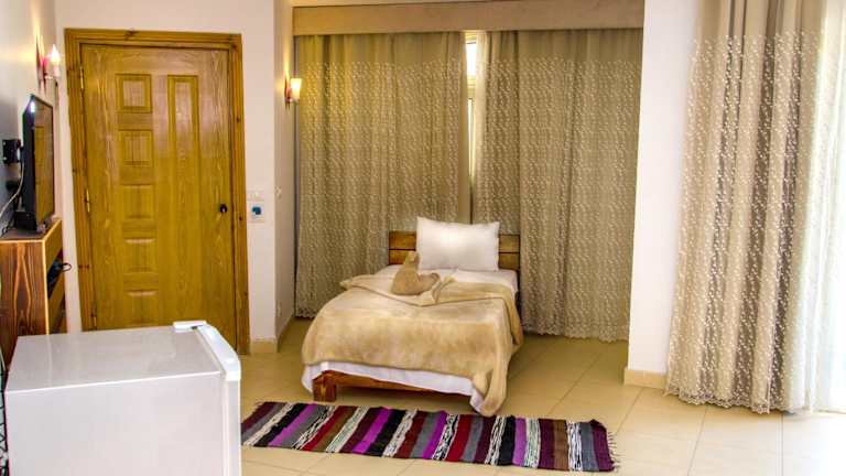 Das New Yalla Hotel liegt nur 200 m vom Dahab Beach entfernt, was bedeutet, dass Sie in nur wenigen Minuten den weißen Sand und das klare, türkisfarbene Wasser genießen können. Die Umgebung bietet auch eine Vielzahl von Restaurants, Bars und Geschäften, in denen Sie lokale Spezialitäten probieren und Souvenirs kaufen können. Der internationale Flughafen Sharm el-Sheikh ist etwa 93 km entfernt und kann leicht mit dem Auto erreicht werden.