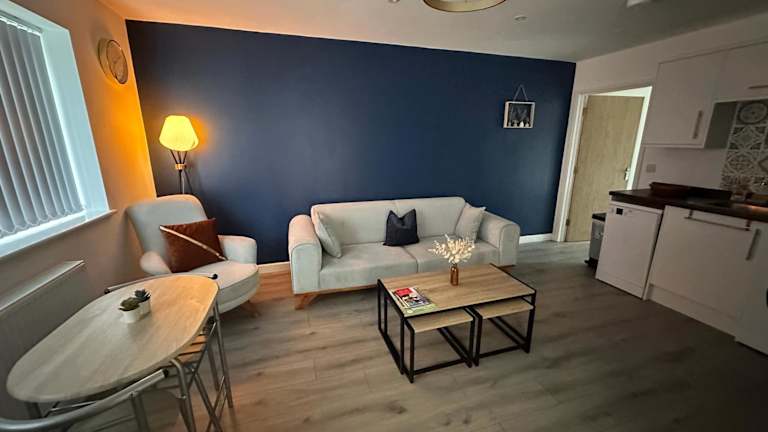 Die Unterkunft ist ein neugebauter Bungalow mit einem Schlafzimmer und verfügt über Front- und Hintergärten. Es handelt sich um eine Ferienwohnung, die in 2023 erbaut wurde.