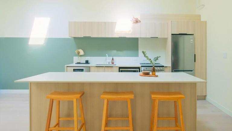 Die Ferienwohnung bietet ein separates Schlafzimmer sowie eine voll ausgestattete Küche mit Kühlschrank und Geschirrspüler. Zudem steht ein Badezimmer zur Verfügung. Die Unterkunft ist klimatisiert und bietet damit einen angenehmen Wohnkomfort.